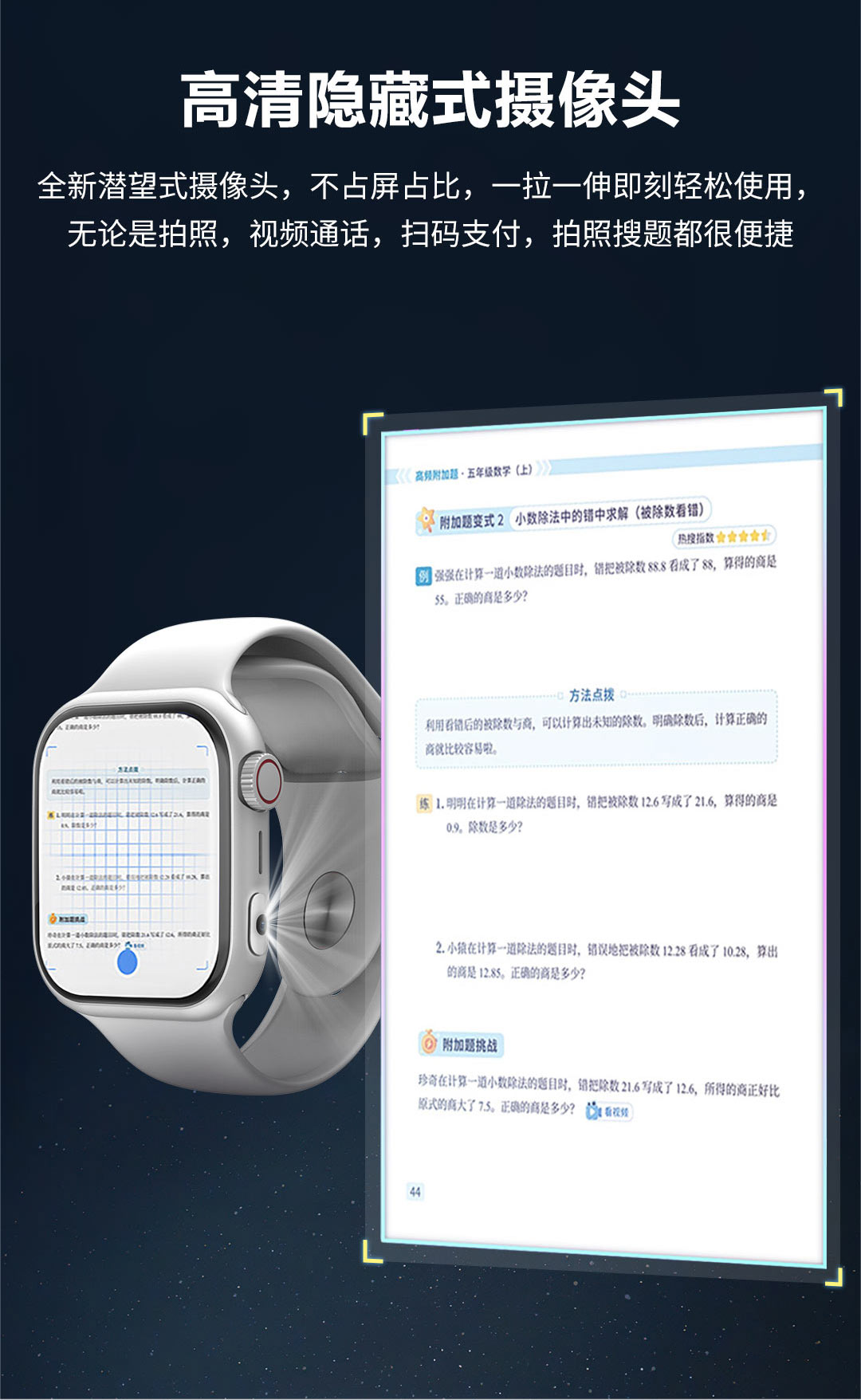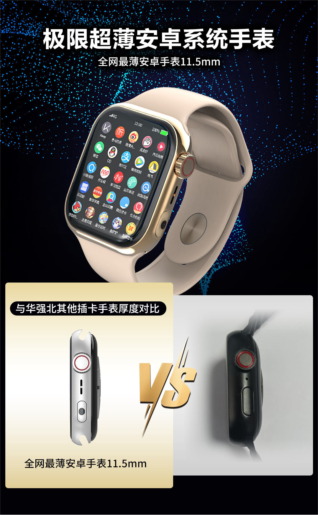 主要卖点:商务类苹果风格,全球安卓系统智能手表最薄款,隐藏式高清摄像头