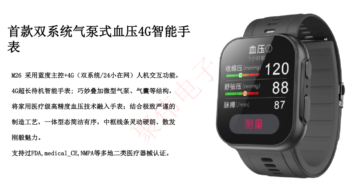 二类医疗器械BPH6气泵血压+心电精准医疗级健康监测智能手表(BPH6气泵血压心电,蓝牙+4G双系统,带二类医疗器械认证)