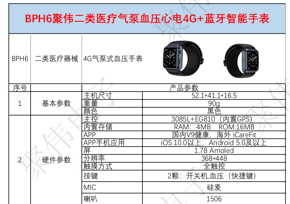 BPH6二类医疗器械气泵血压心电4G双系统智能手表